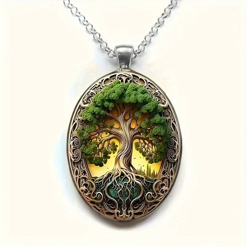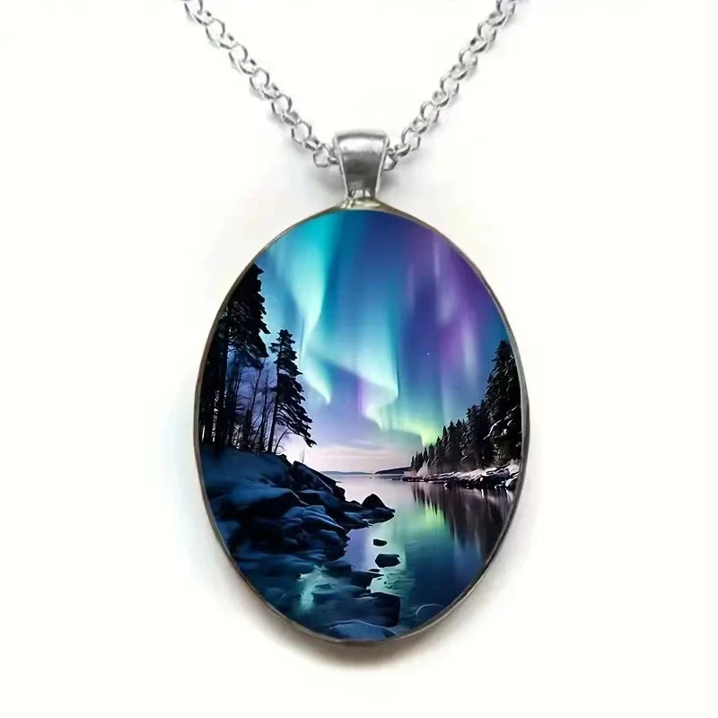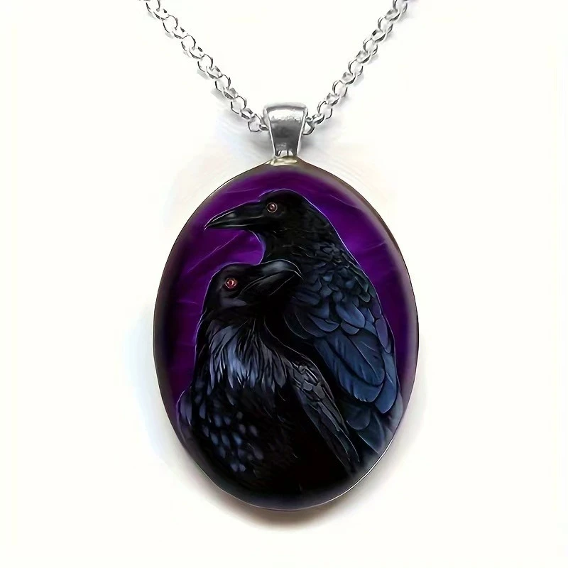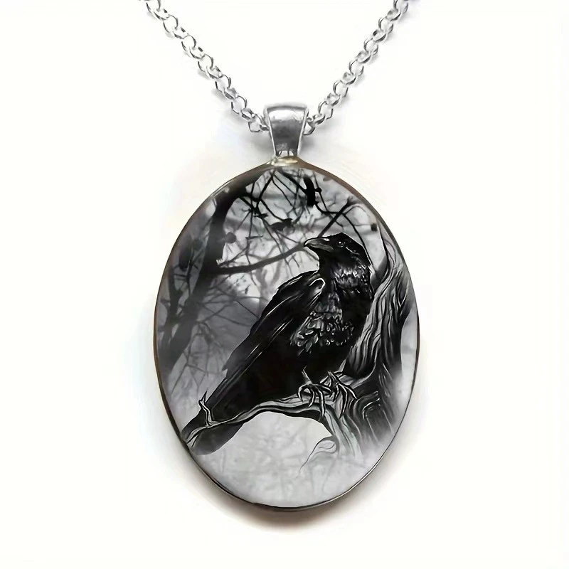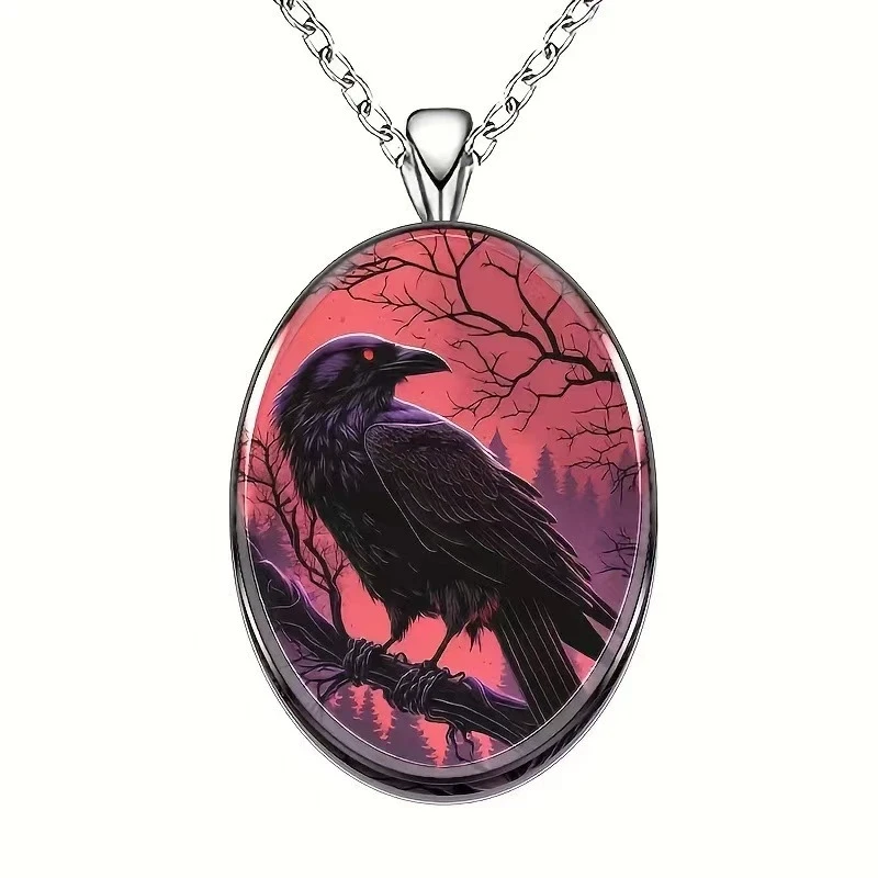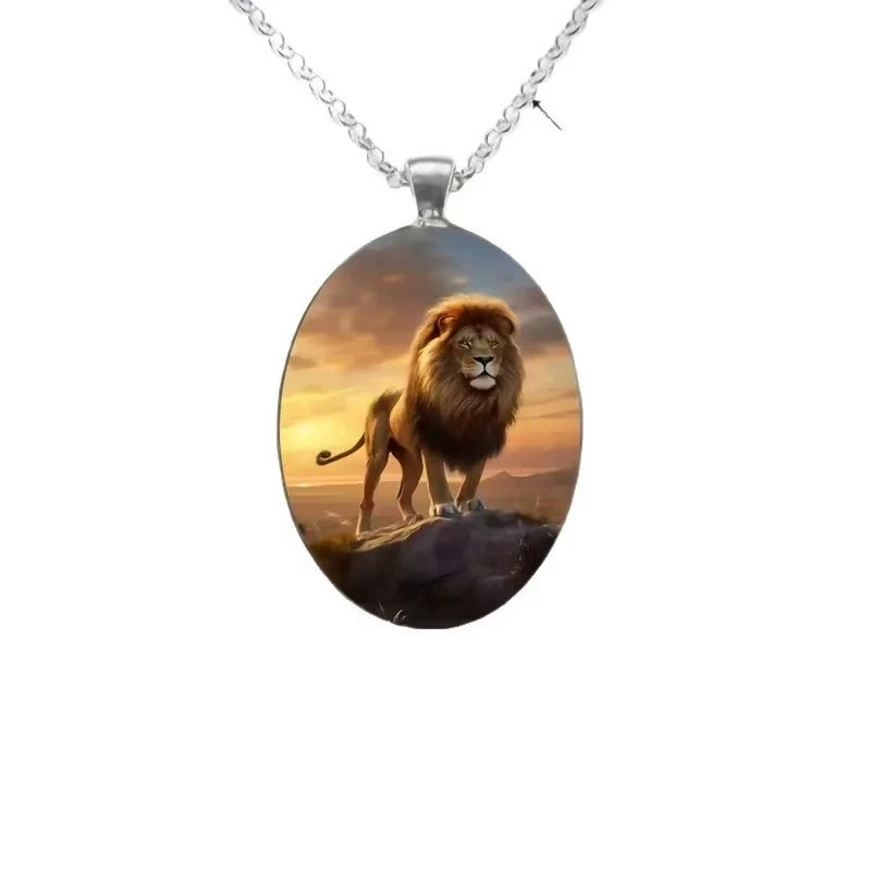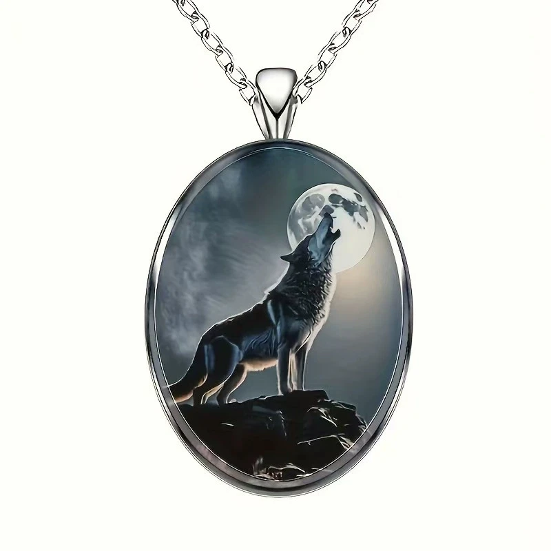 Elegant Oval Shaped Glass Alloy Wolf Pendant Necklace