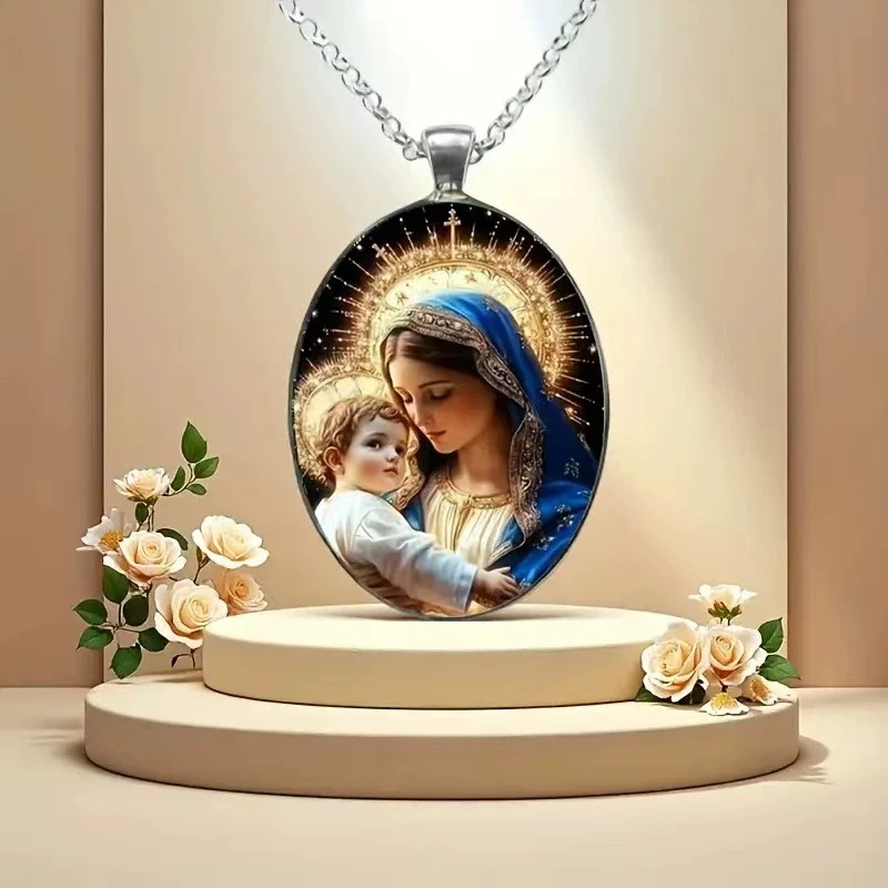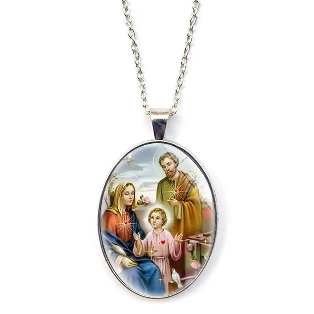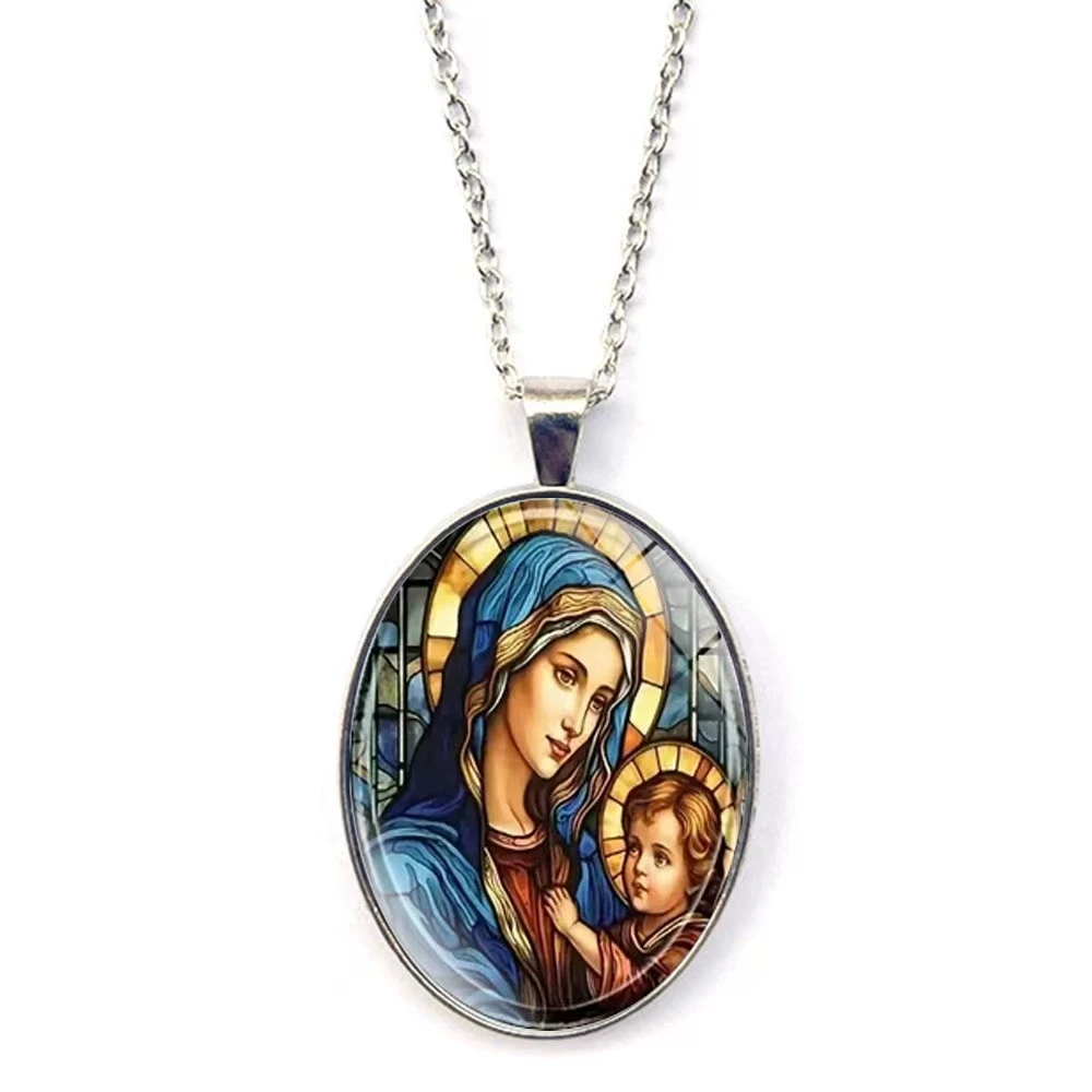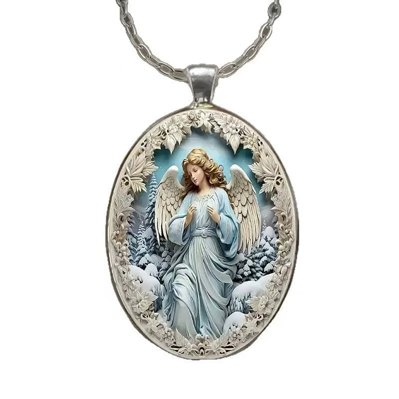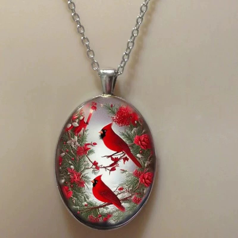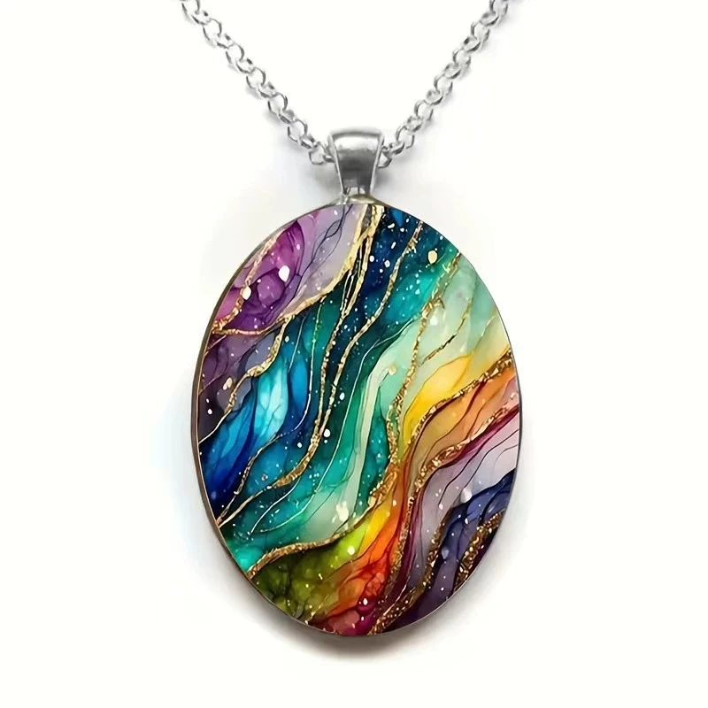 Elegant Oval Shaped Glass Alloy Wolf Pendant Necklace