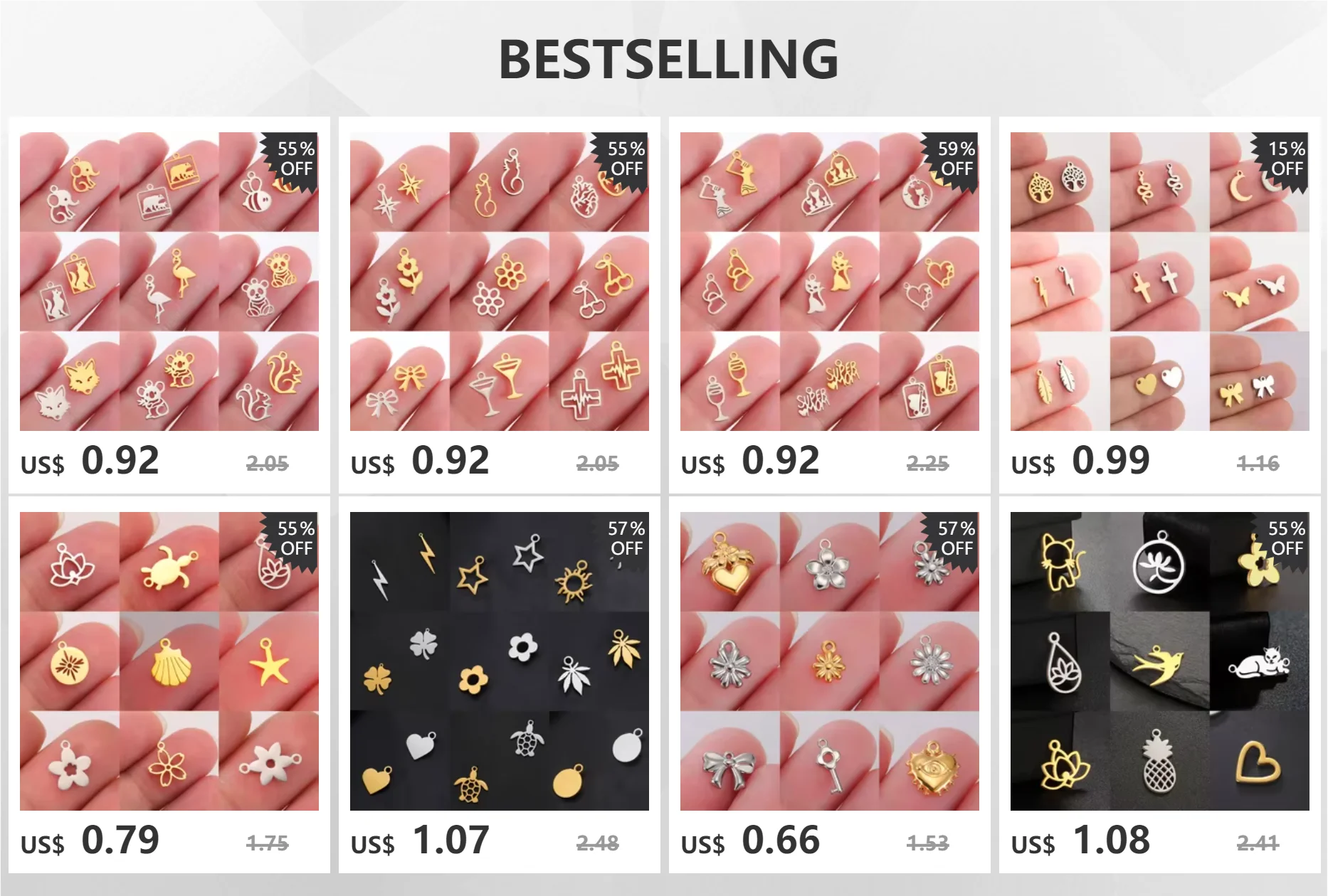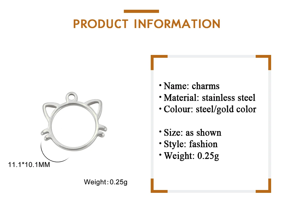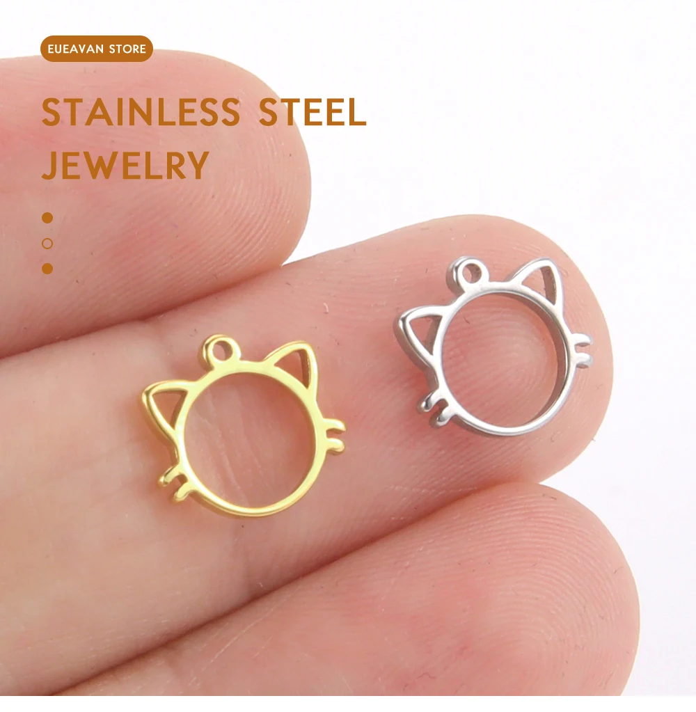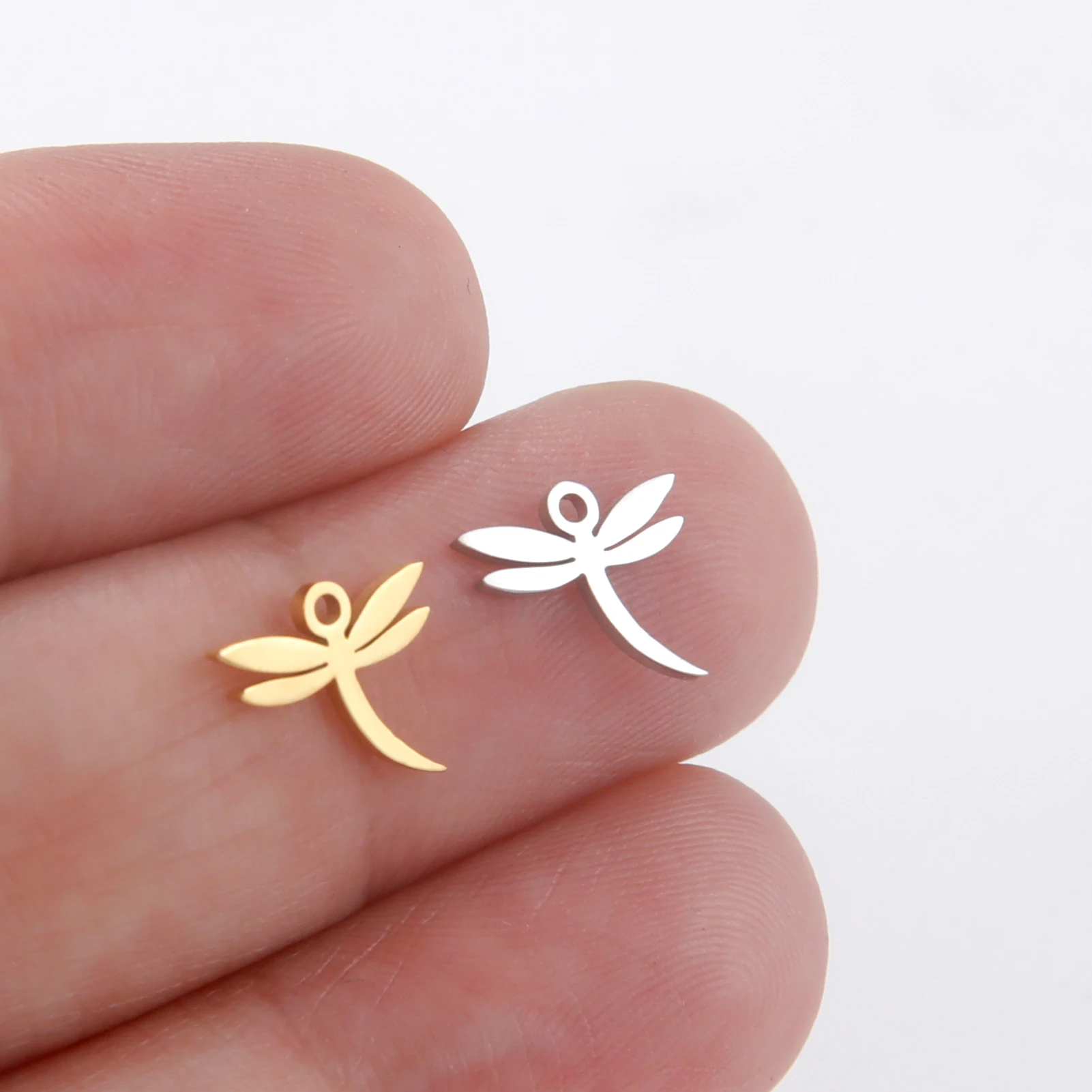 EUEAVAN 5pcs Animal Stainless Steel Charms Cat Butterfly Paw Dragonfly Fish Tail DIY Pendant Necklace Jewelry Making Accessories
