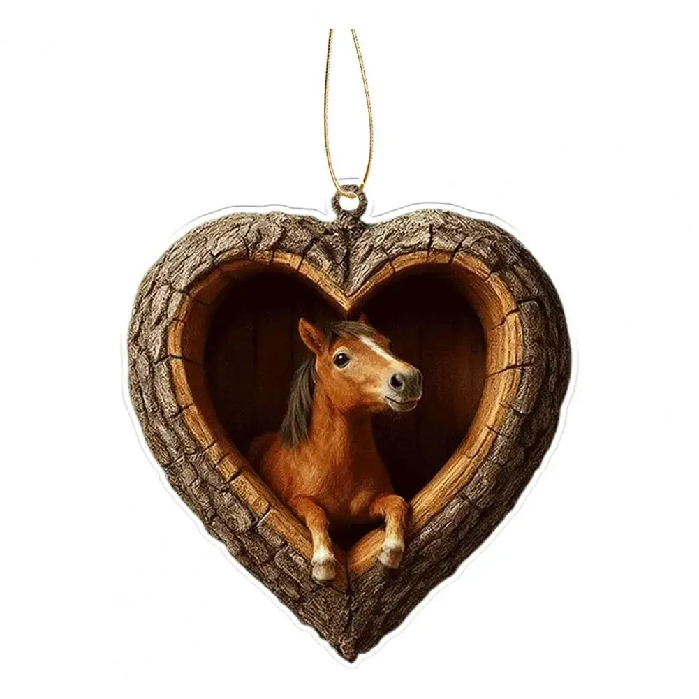 Heart-Shaped Animal Christmas Ornament 2D Flat Acrylic Forest Animal Decoration Woodland Pendant for Xmas Tree Decor Animals Lovers Gift