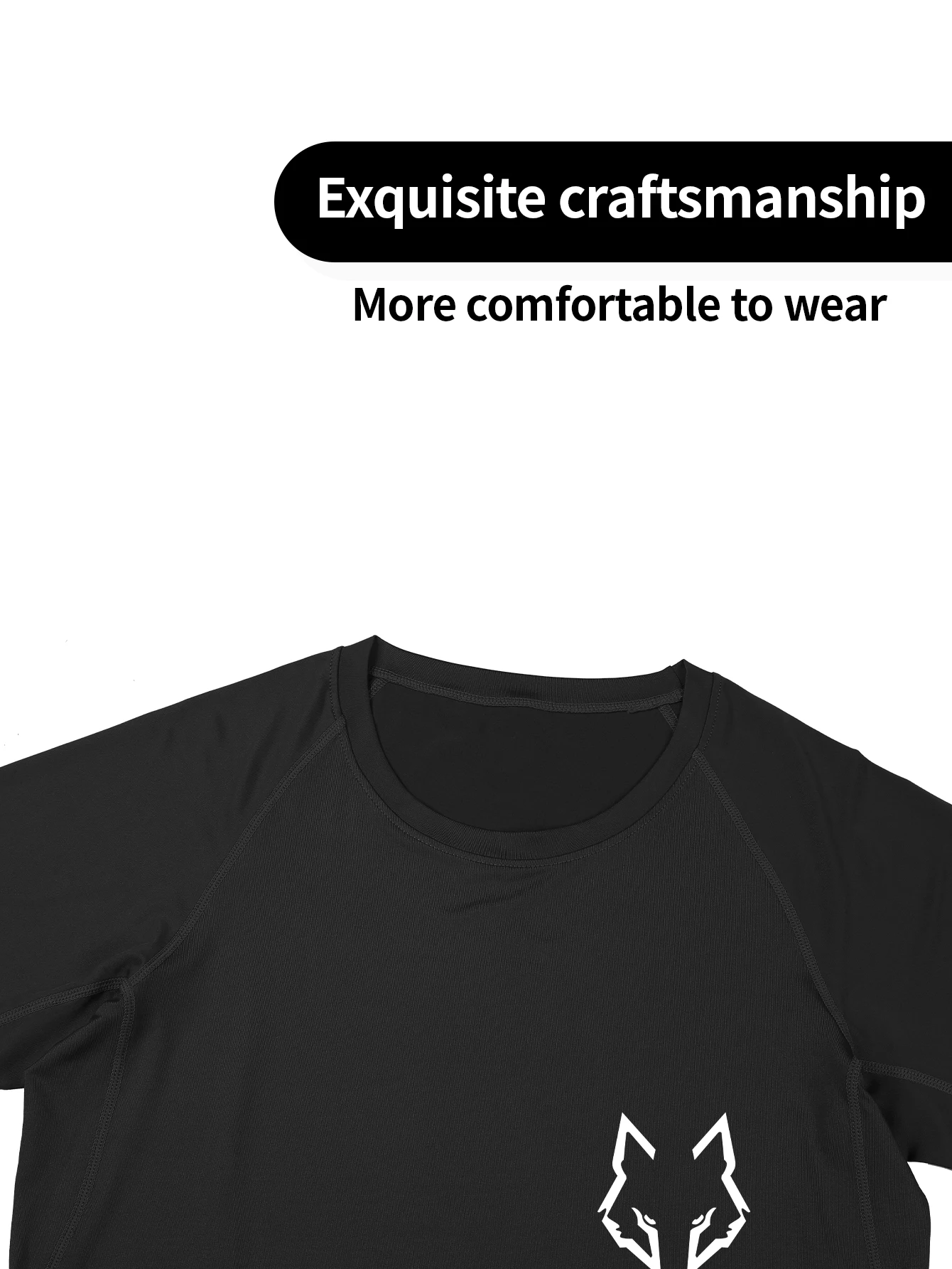 Men's Black Fitness Compression Wolf Long Sleeve T-Shirt