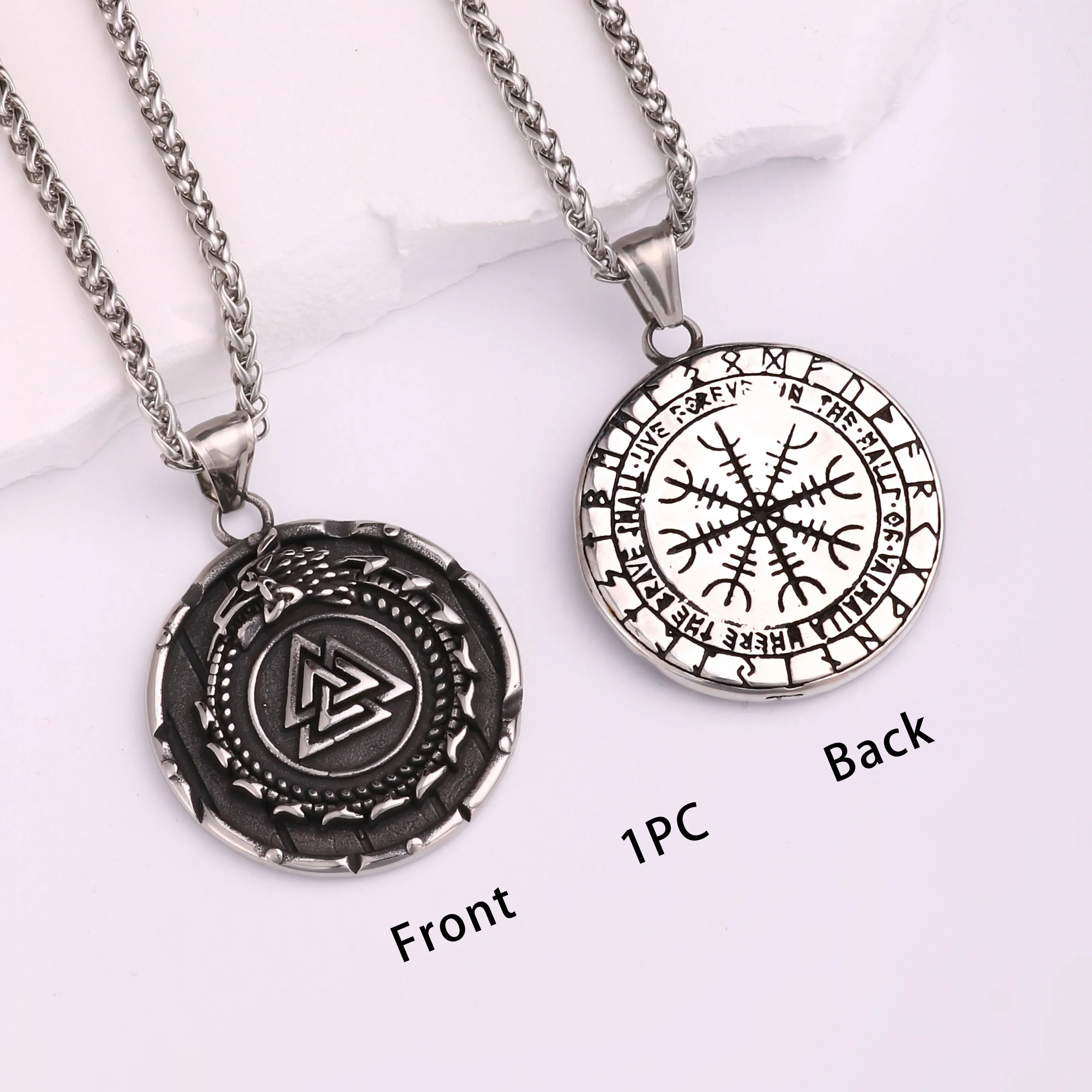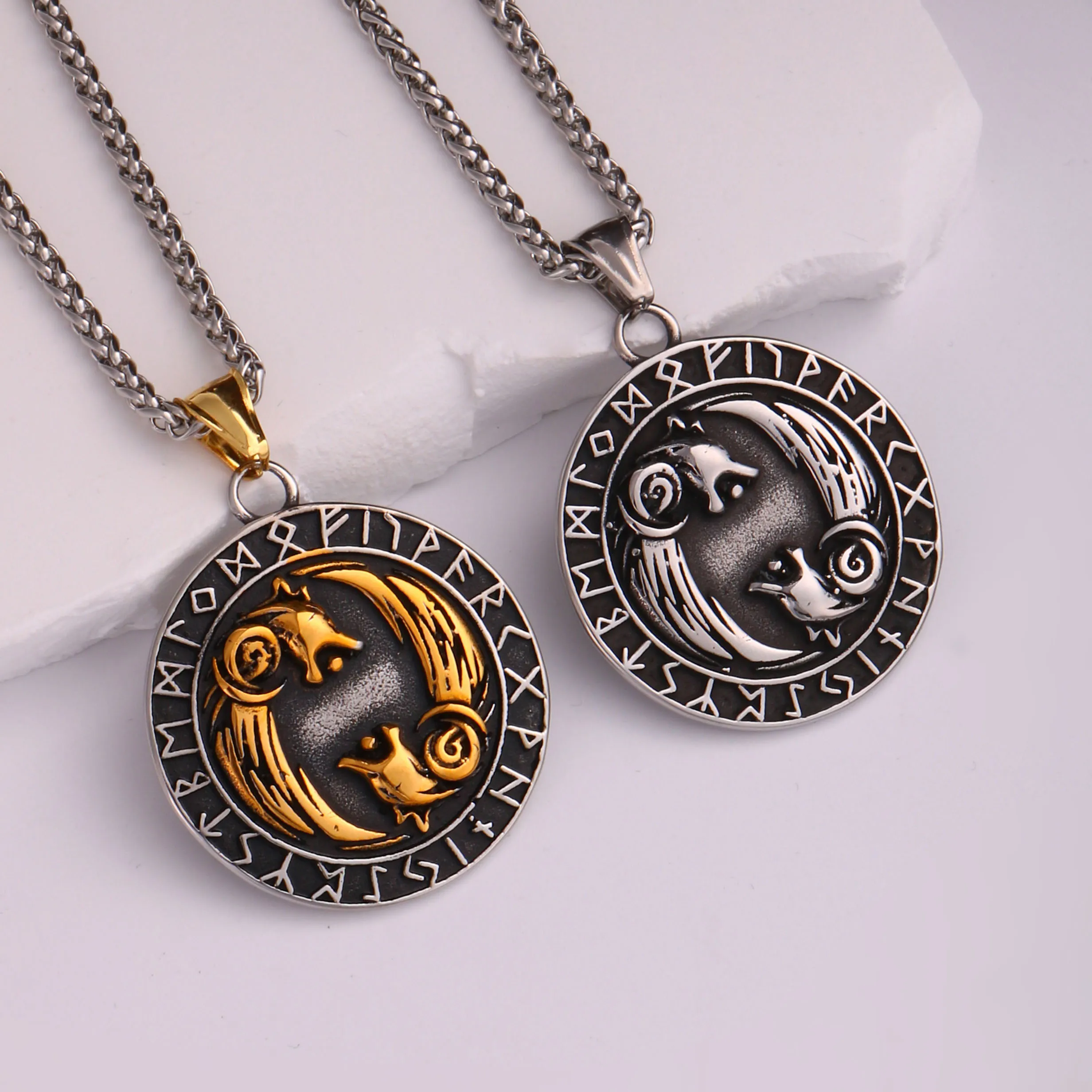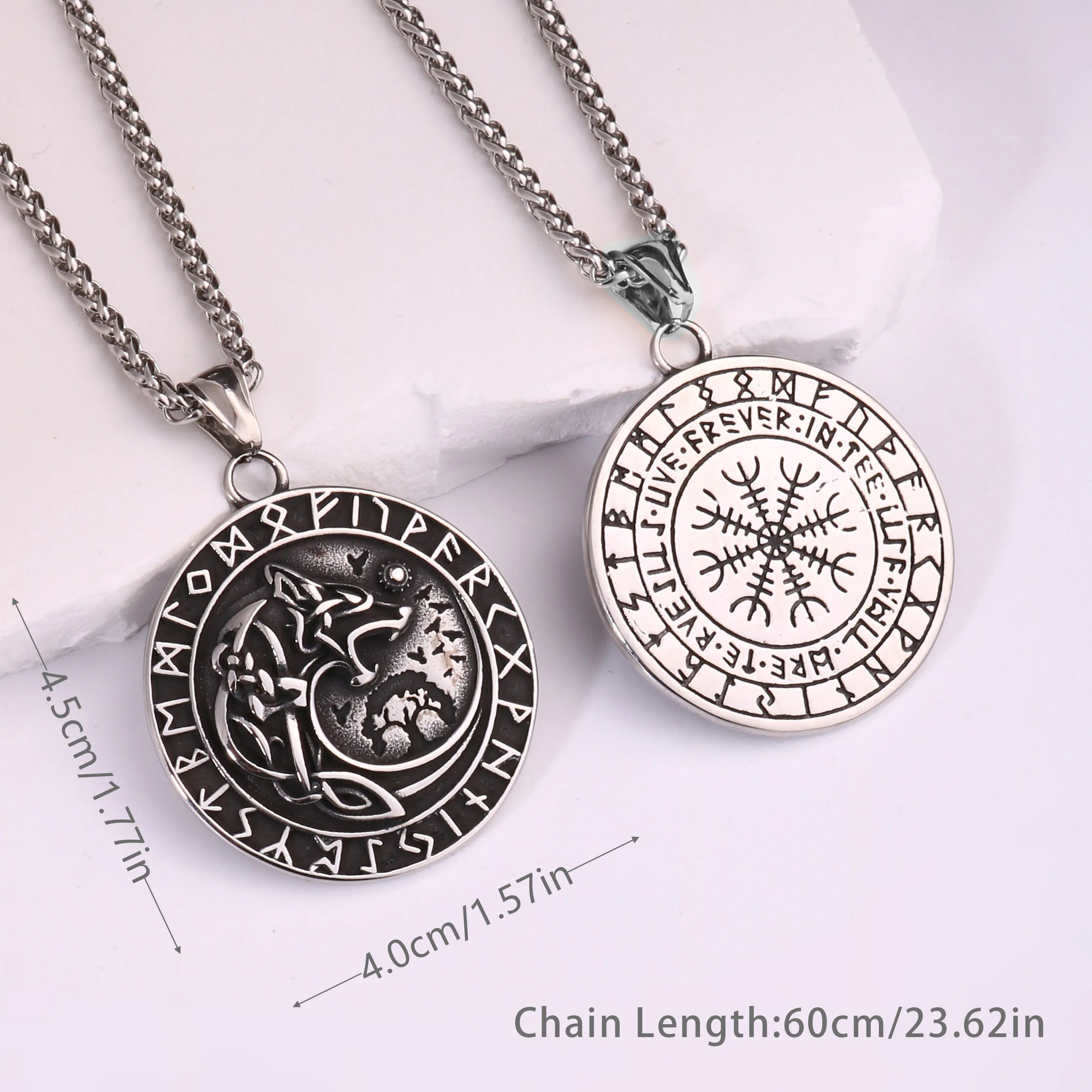 1PC Vintage Stainless Steel Myth of Europe Viking Wolf Necklace for Men Viking Compass Necklace Men Spiritual Jewelry