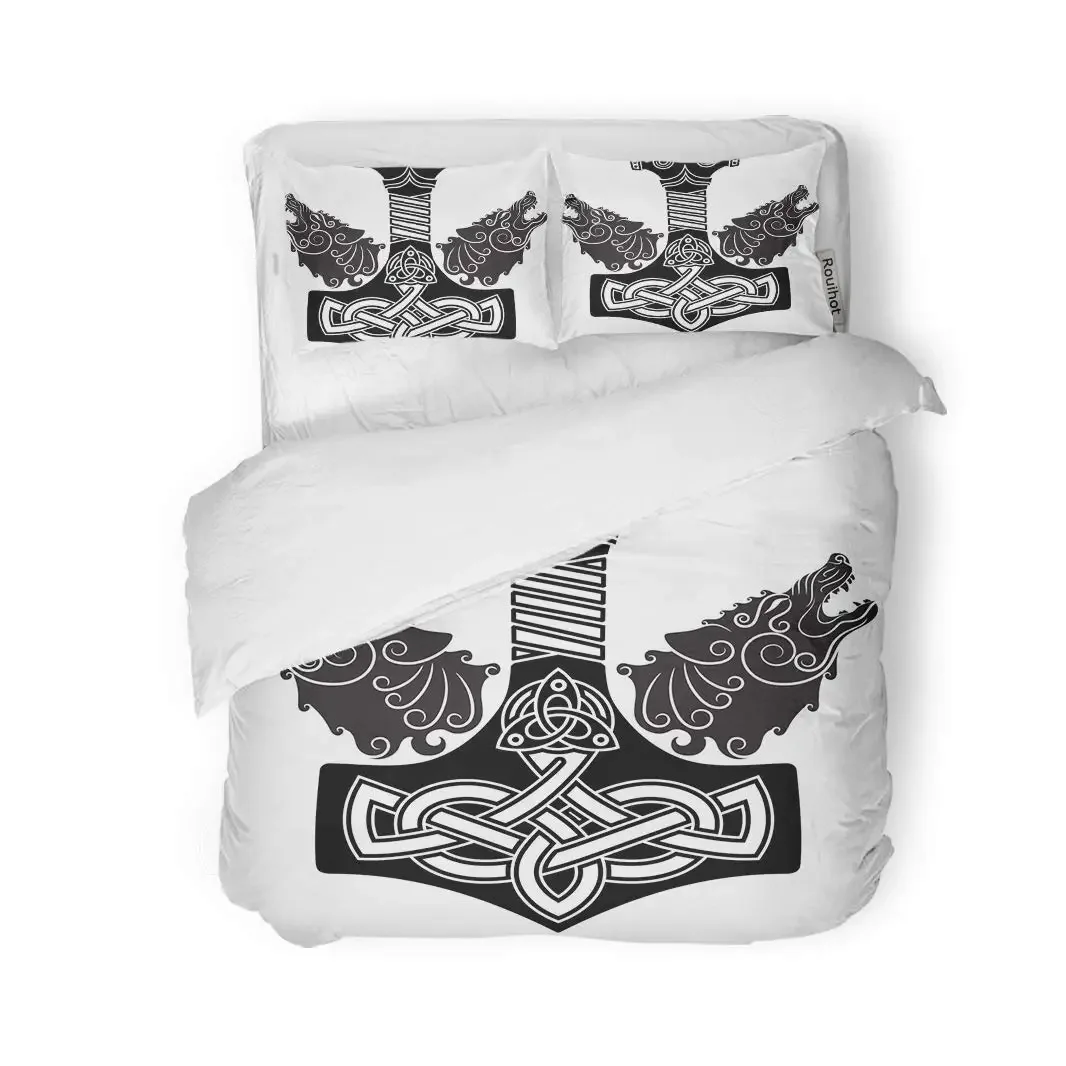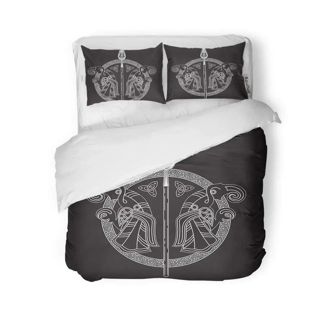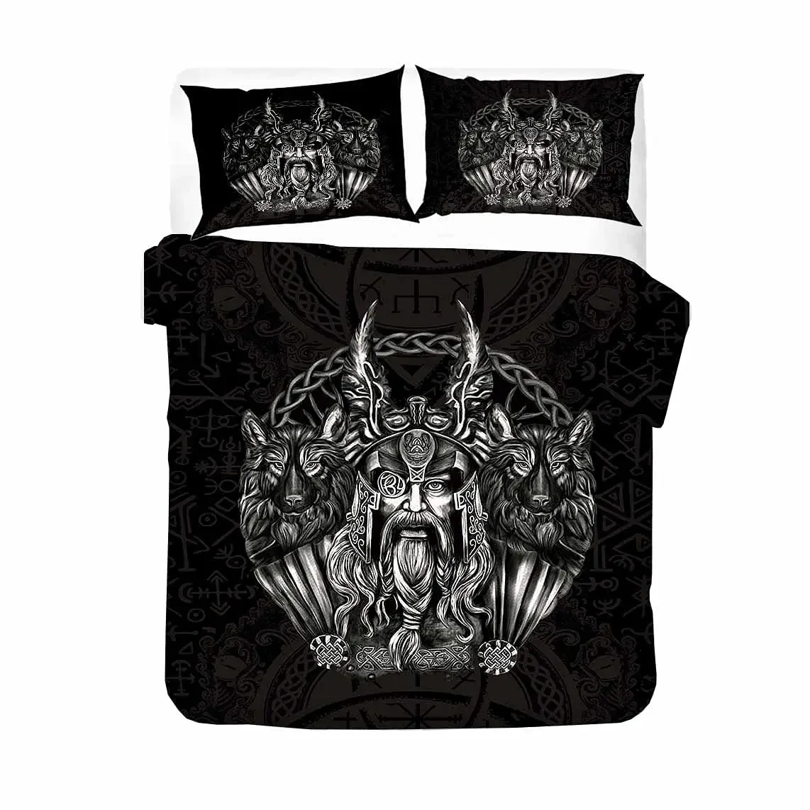 Viking Vintage Wolf King Queen Duvet Cover Norse Myth Bedding Set