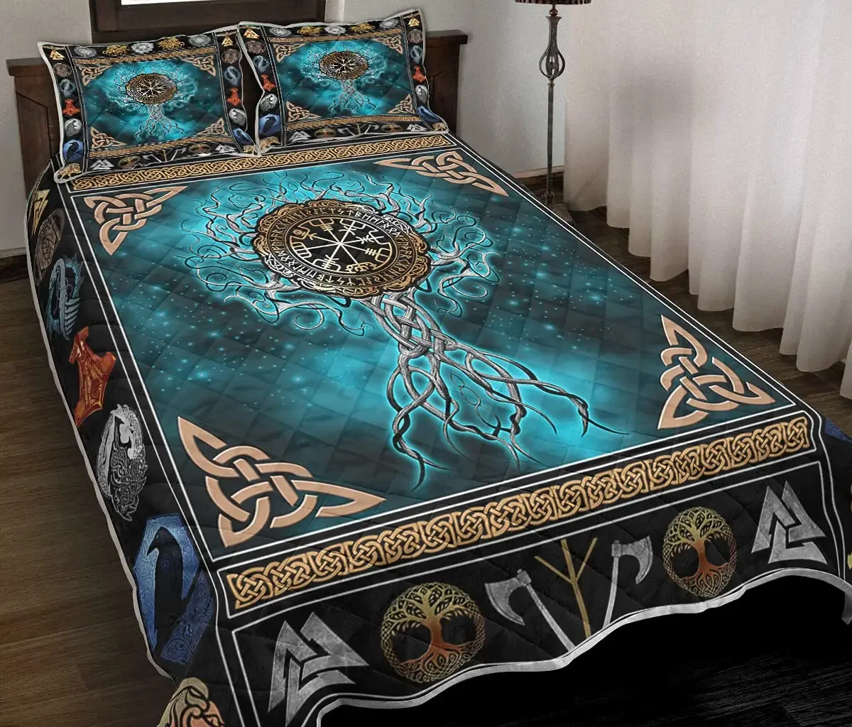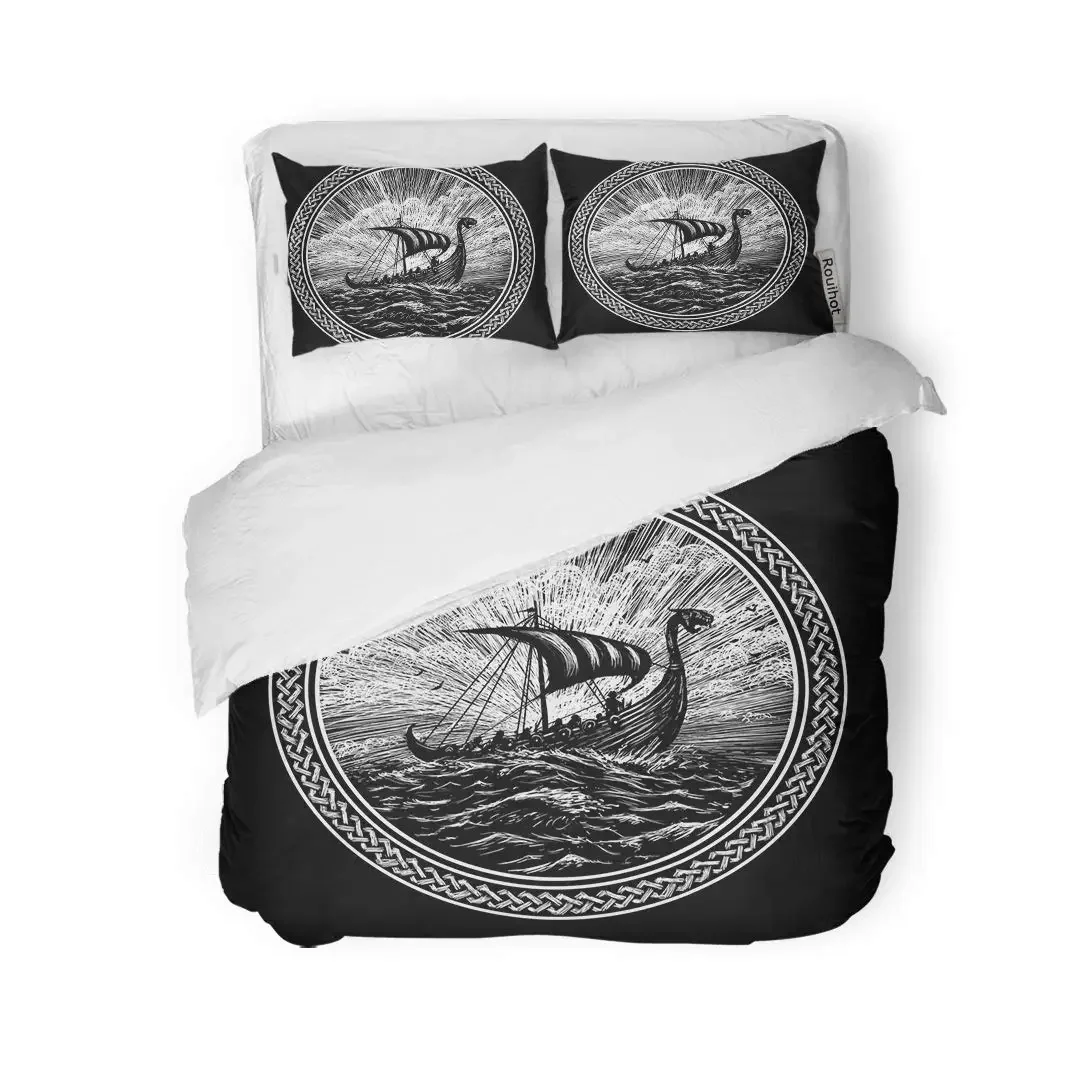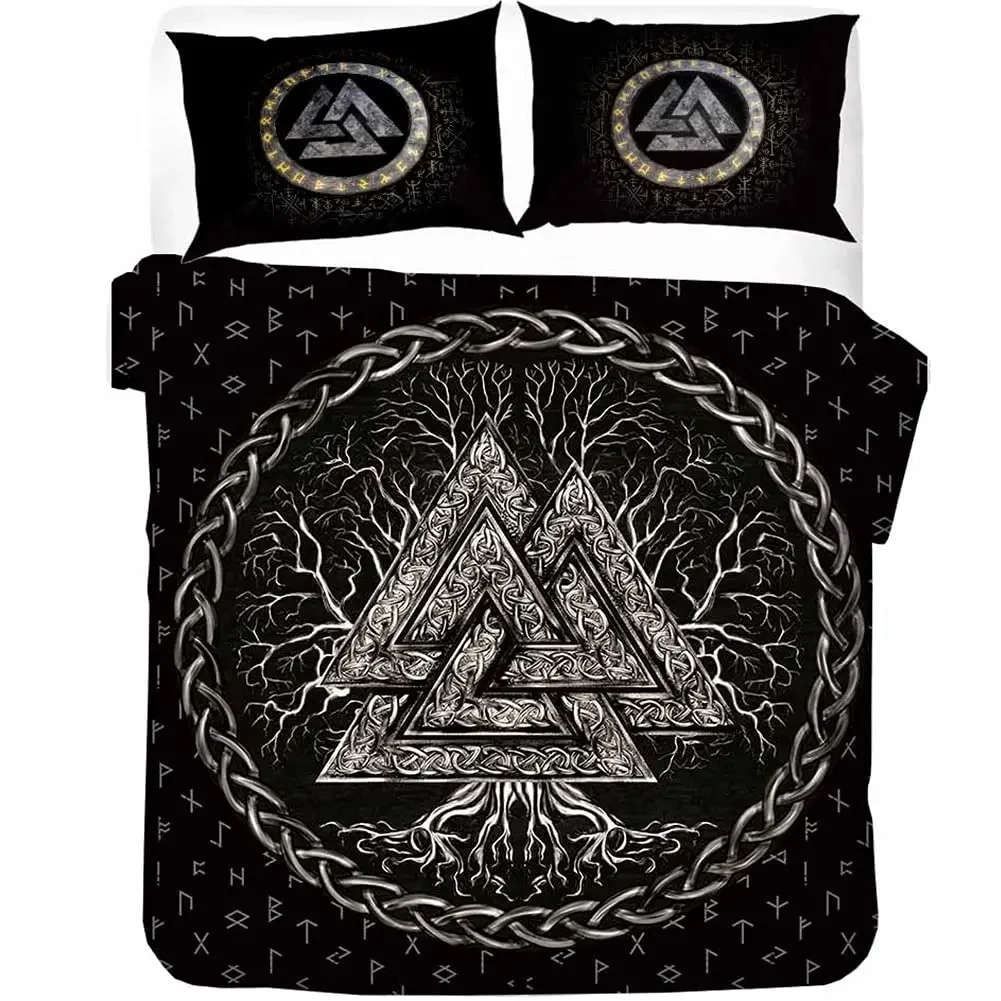 Viking Vintage Wolf King Queen Duvet Cover Norse Myth Bedding Set