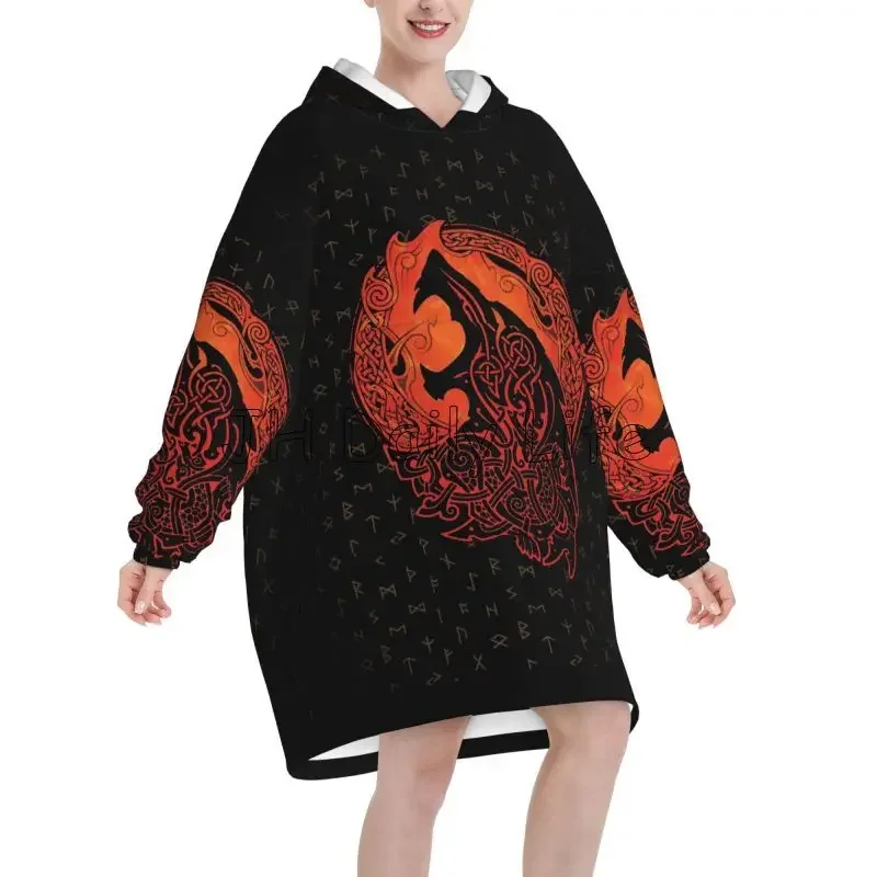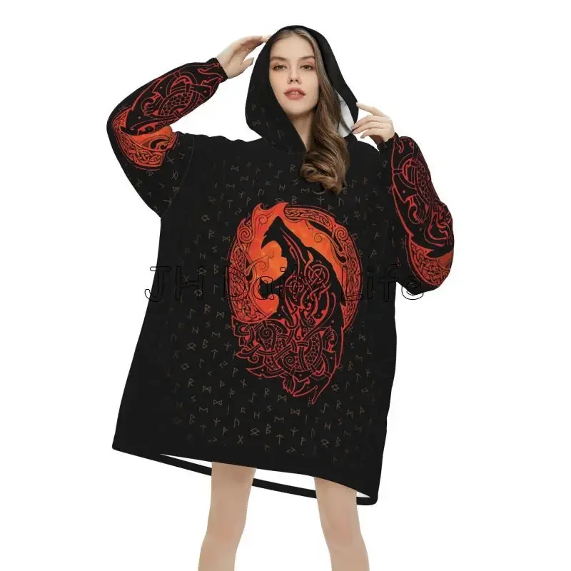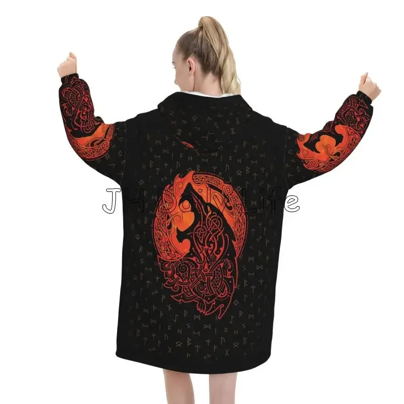 Viking Wolf Knot Fenrir Wearable Soft Hoodie Blanket Sweatshirt