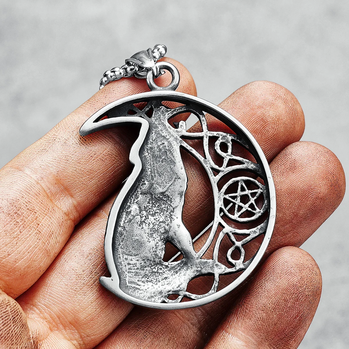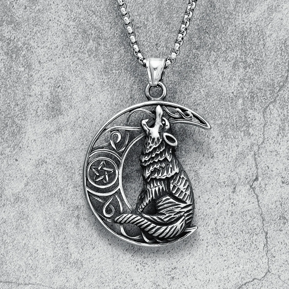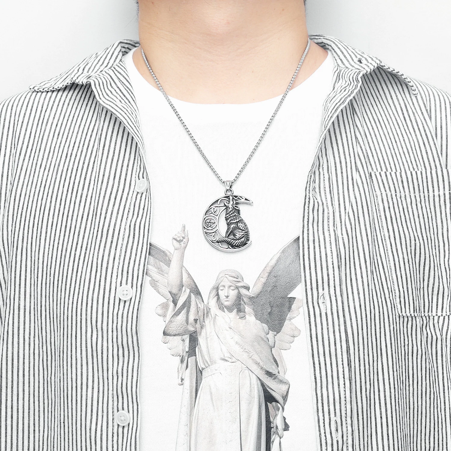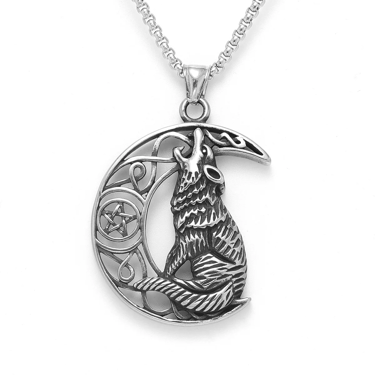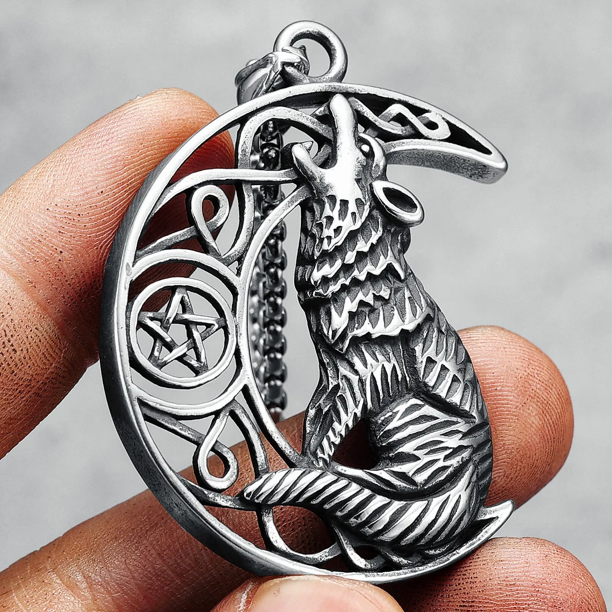 Viking Wolf Moon Necklace for Men or Women Retro Celtic Punk Hip Hop Pendant