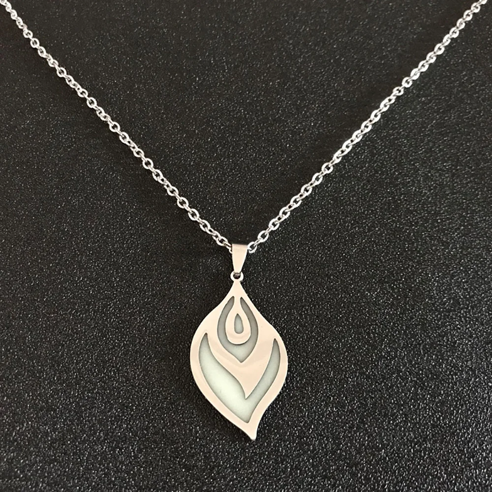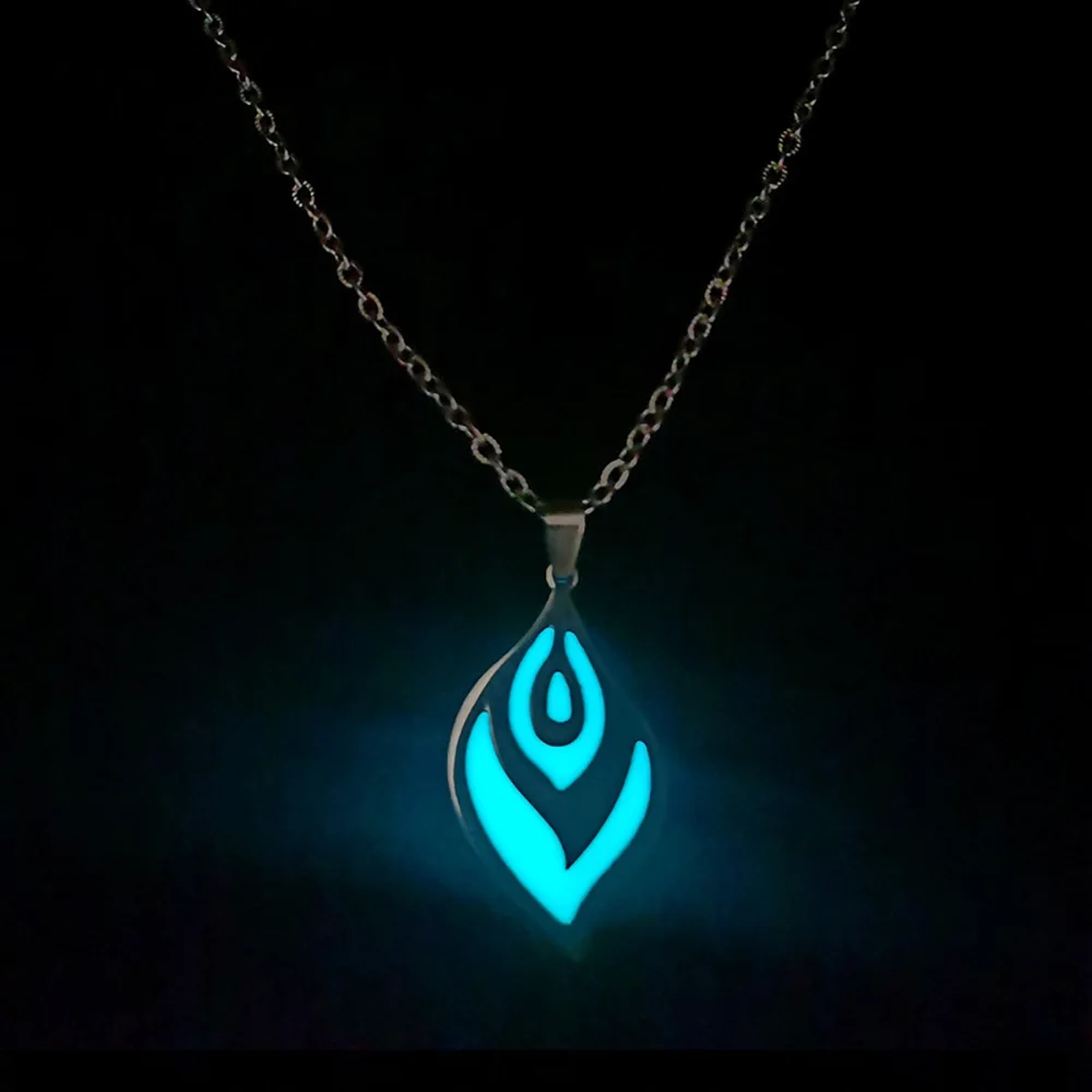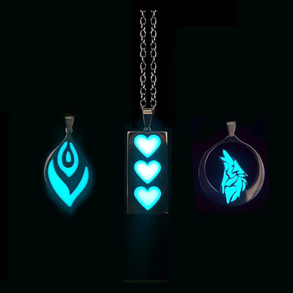 Stainless Steel Glowing Luminous Heart Wolf Fluorescence Glow In The Dark Heart Pendant Necklace for Men Women Halloween Gift