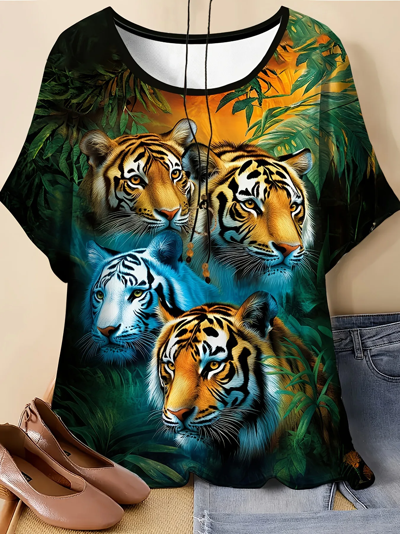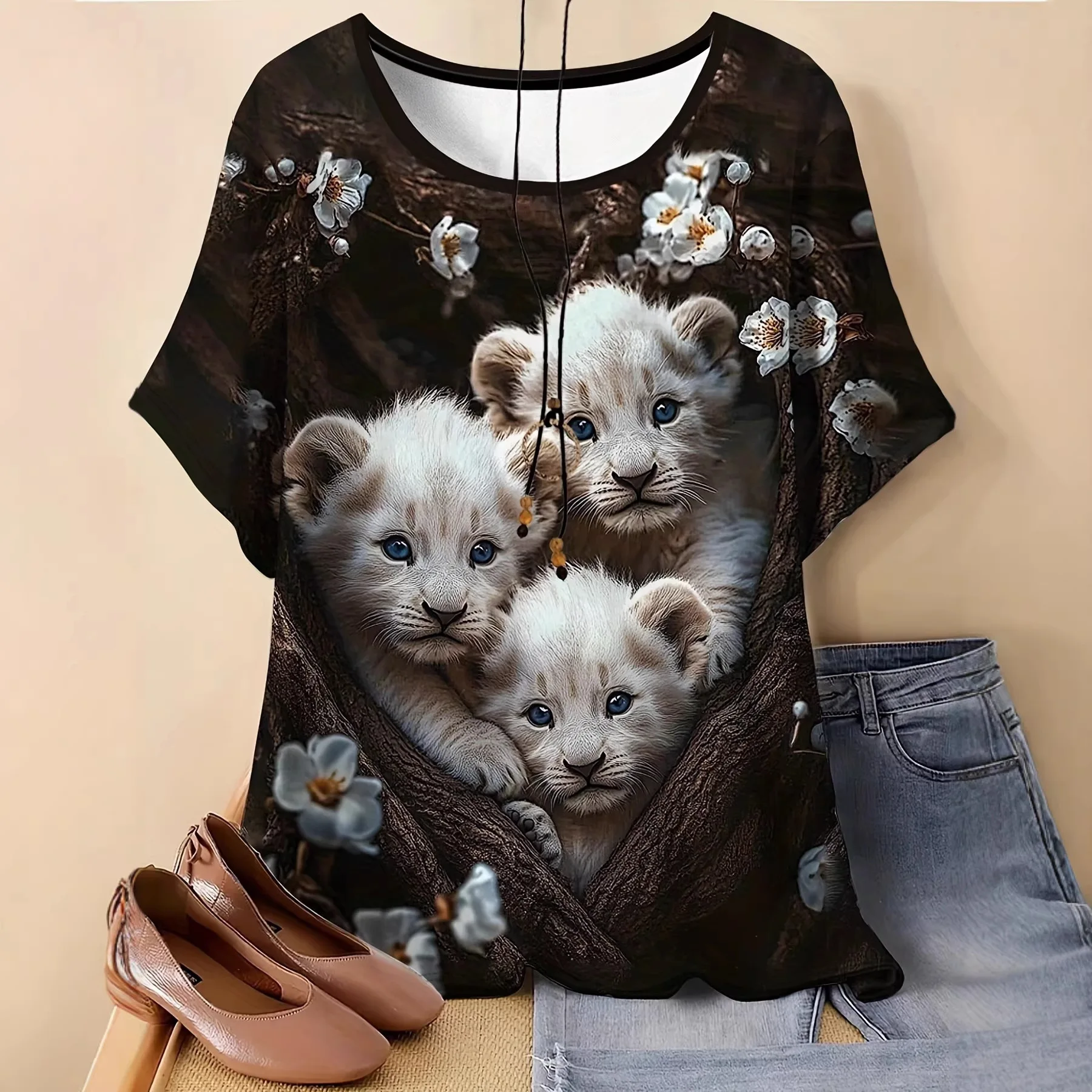Wolf Leopard Tiger Summer Short Sleeve Women's T-Shirts