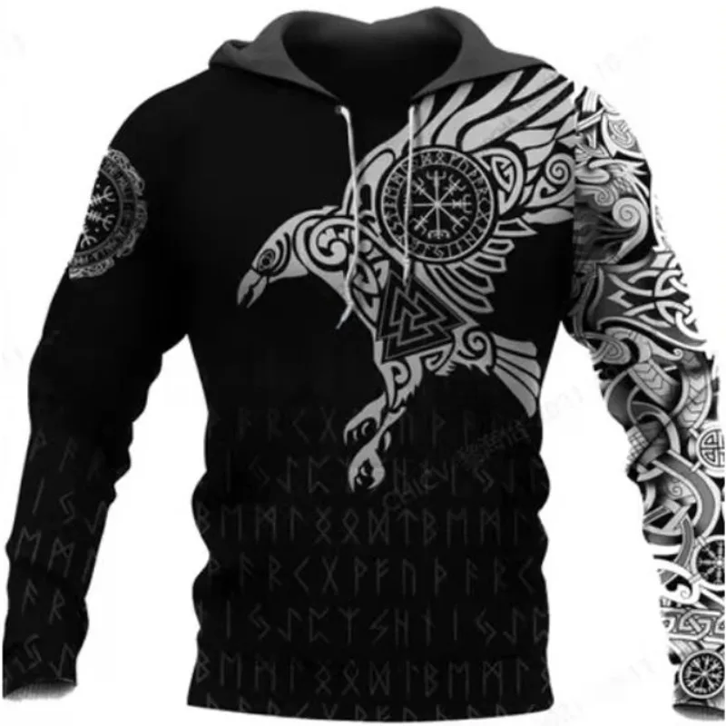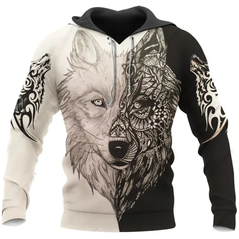 Wolf Viking Pullover for Men Autumn Hooded Sweatshirt